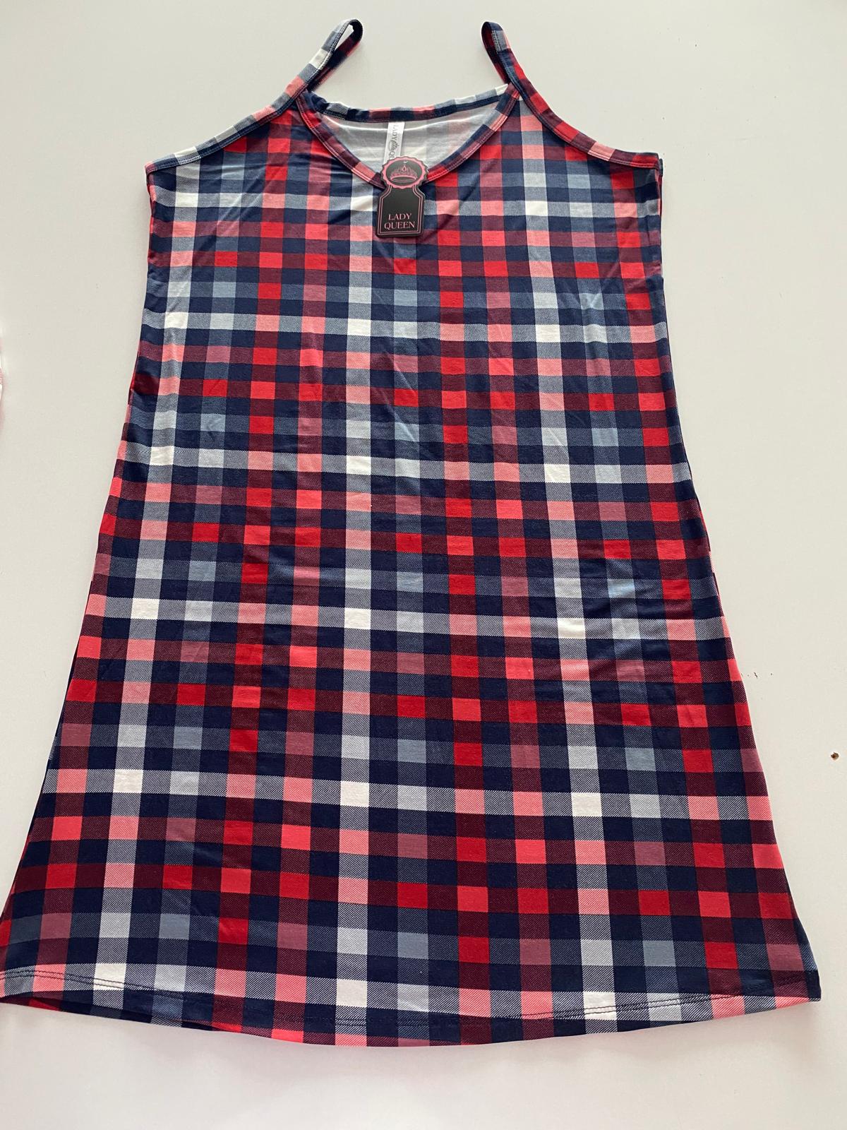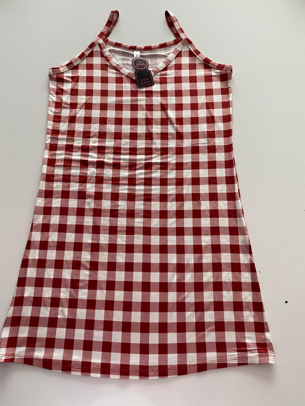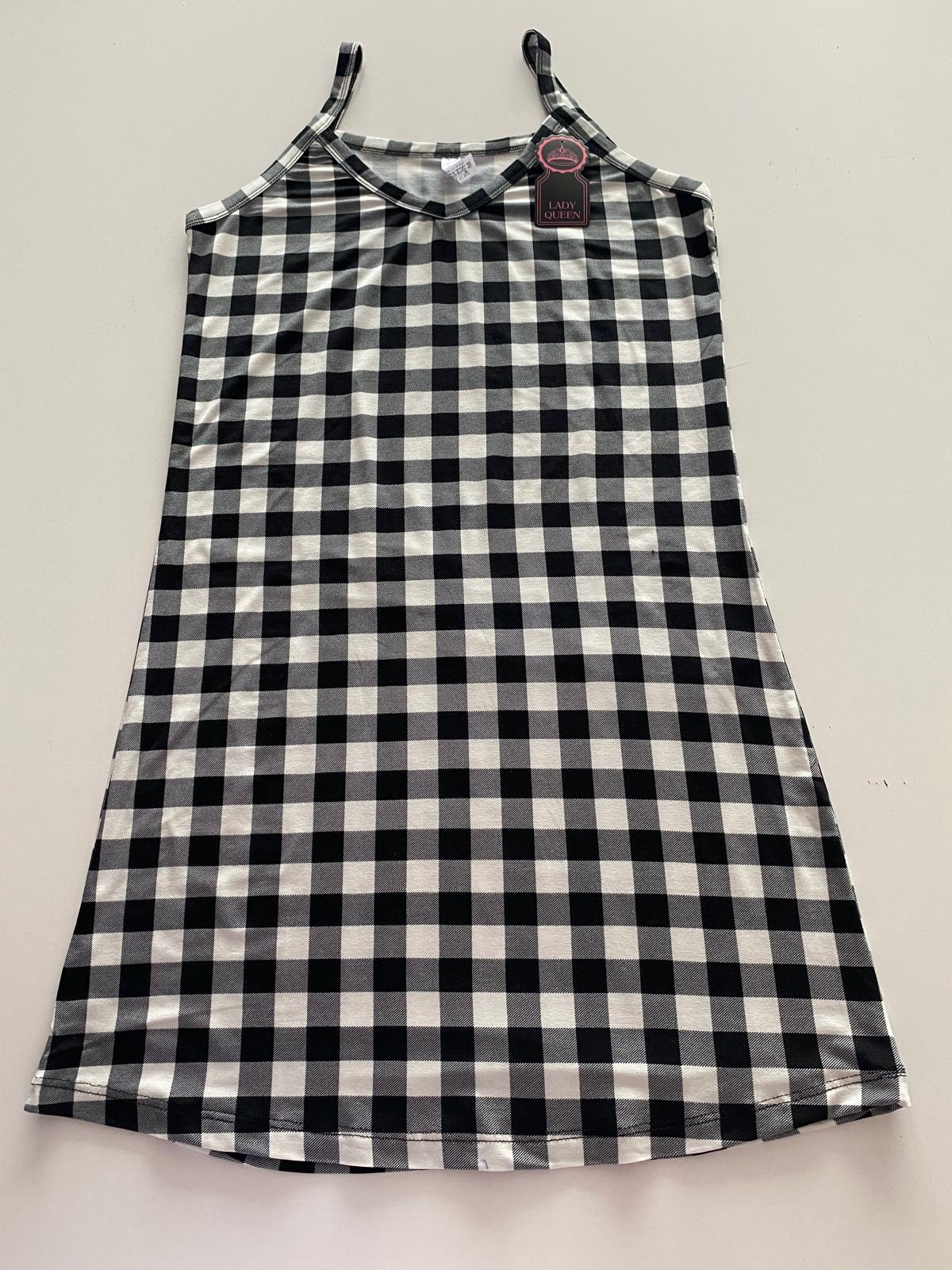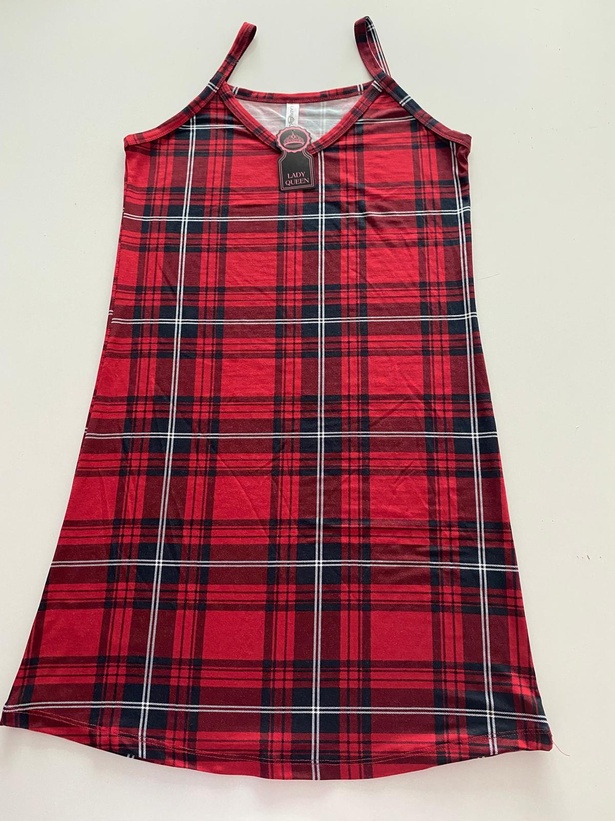 Lady Queen 6060 Likralı Ring Viskon Askılı Gecelik – Siyah Kırmızı Kare Desen