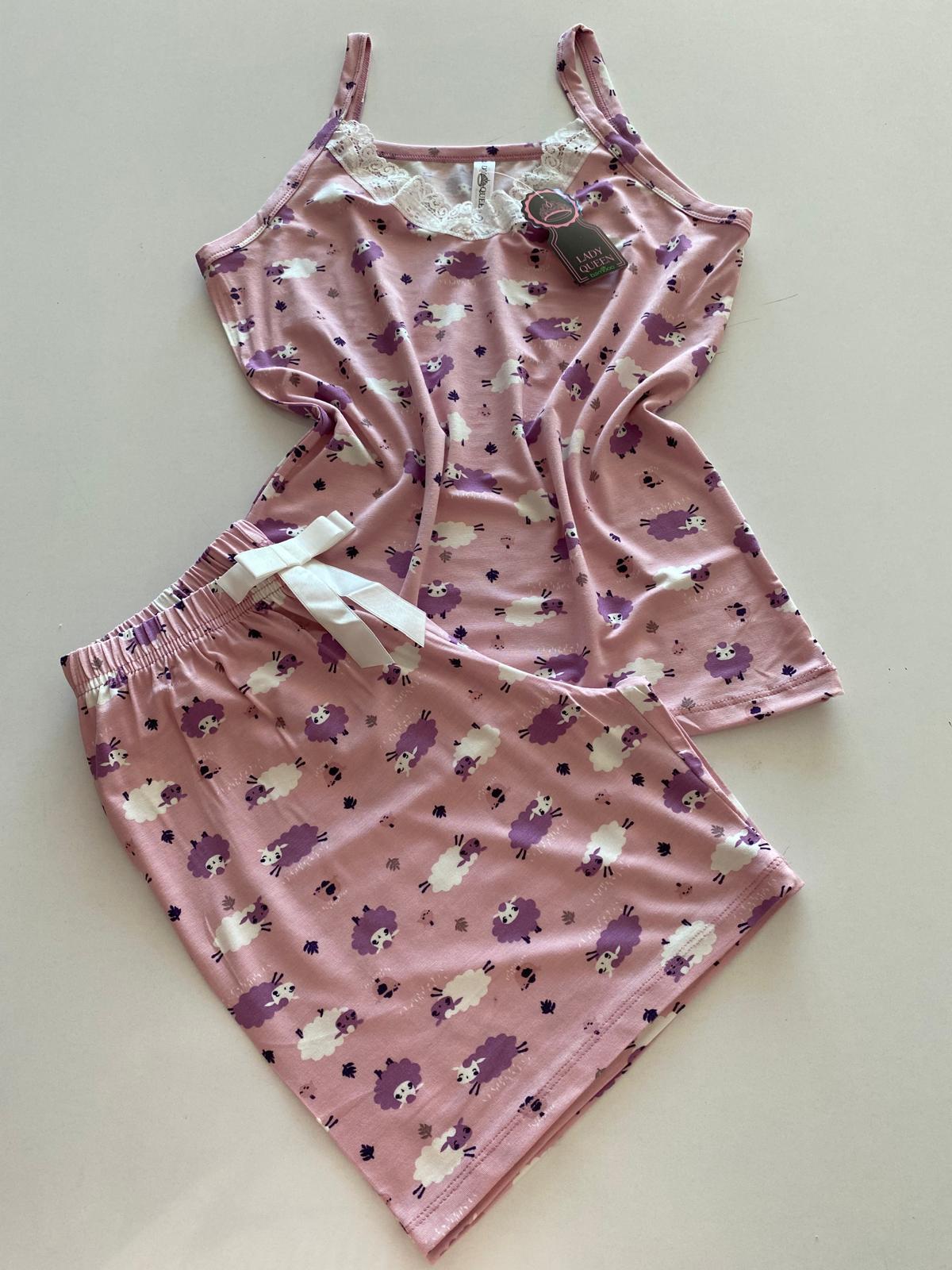 Lady Queen - Koyun Desenli - 6016 Likralı Ring Viskon Şort Takım