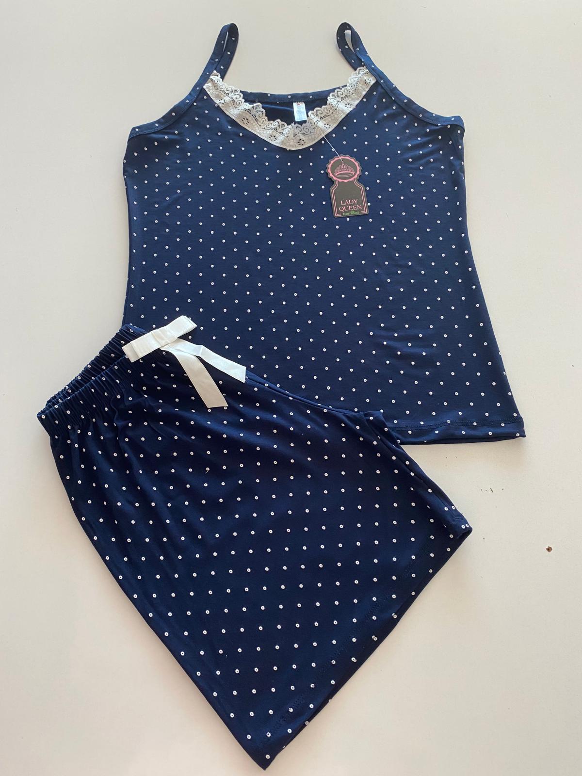 Lady Queen - Lacivert Puantiyeli - 6016 Likralı Ring Viskon Şort Takım