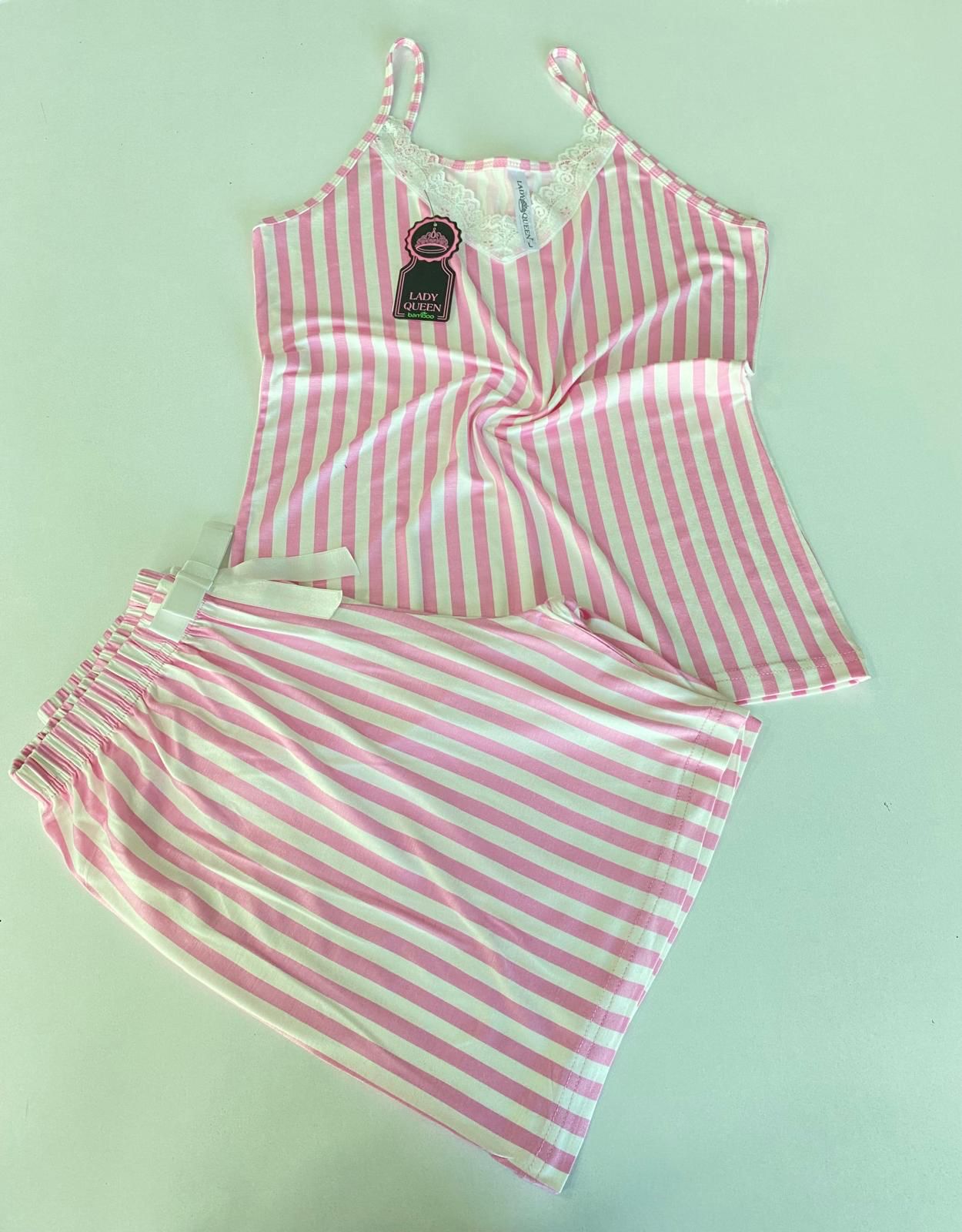 Lady Queen - Pembe Çizgili - 6016 Likralı Ring Viskon Şort Takım